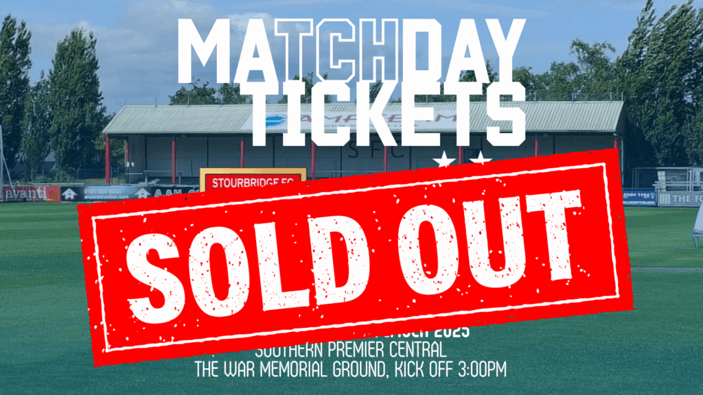 Halesowen Town can confirm that our full allocation of tickets for Saturday’s away fixture at Stourbridge (22nd November) has now sold out.