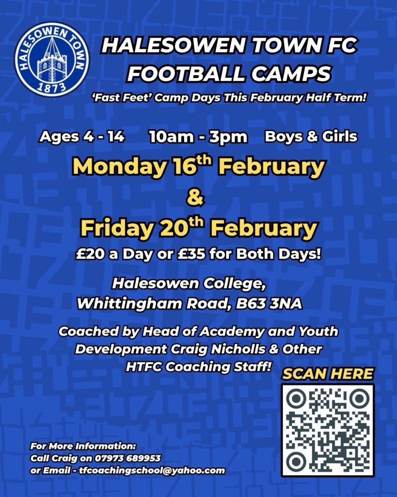 All camps are available to book through the new booking system by scanning the QR code or heading to https://HTFC-CC.classforkids.io